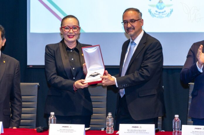 Con la presencia de representantes del Poder Legislativo y Judicial, así como de integrantes de las Grandes Logias de Michoacán, la rectora agradeció este reconocimiento, tras resaltar el trabajo en equipo que se ha podido generar con la Gran Logia Lautariana de México.