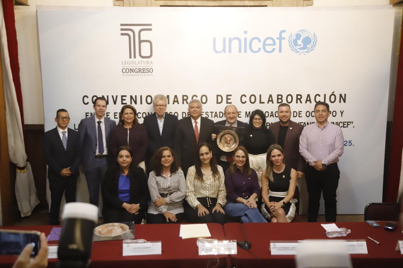 El Congreso del Estado signó un convenio de colaboración con la oficina en México de la Naciones Unidas para la Infancia UNICEF con el compromiso de trabajar en favor de las niñas, niños y adolescentes de Michoacán, en acciones que permitan contar con una mejor legislación, pero también en la generación de mejores políticas públicas.