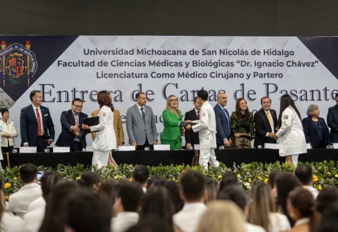 “Hoy, están aquí y lo lograron con el alma llena de orgullo, y quiero felicitar de todo corazón a todos ustedes, porque son testimonio vivo de que los sueños se alcanzan”, afirmó la rectora de la Universidad Michoacana de San Nicolás de Hidalgo (UMSNH), Yarabí Ávila González, al hacer entrega de cartas de pasante a integrantes de la generación 2020-2025 de la Licenciatura como Médico Cirujano, dependiente de la Facultad de Ciencias Médicas y Biológicas.