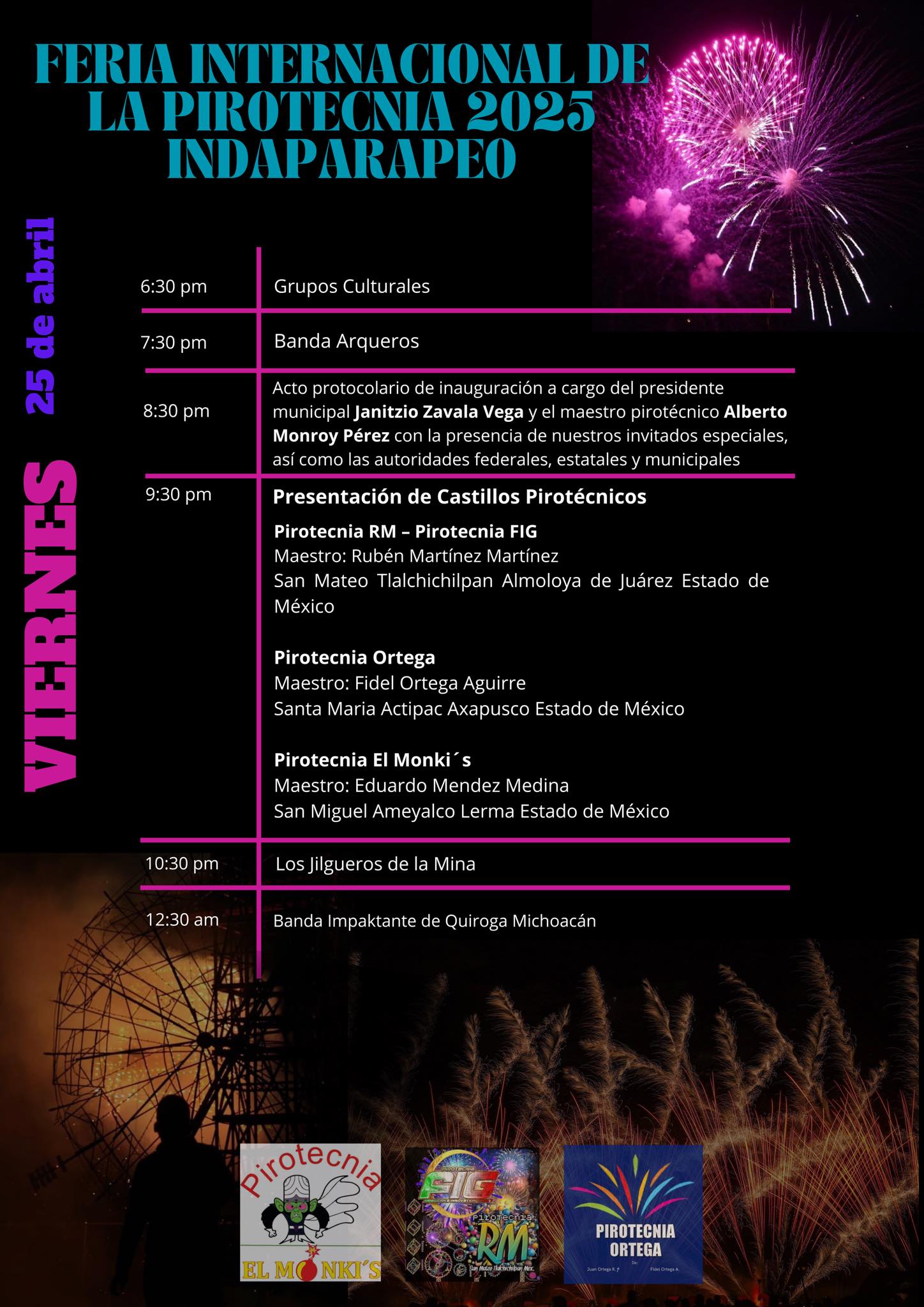 Al dar a conocer el programa oficial, el Presidente Municipal de Indaparapeo, estuvo acompañado de Alexis Nareli Rosel García, directora de Turismo, y la tesorera, Marijose Bucio Silva, quienes reconocieron el aporte de la familia Monroy con la realización de la Feria Internacional de la Pirotecnia, que este año espera reunir a más 18 mil personas.