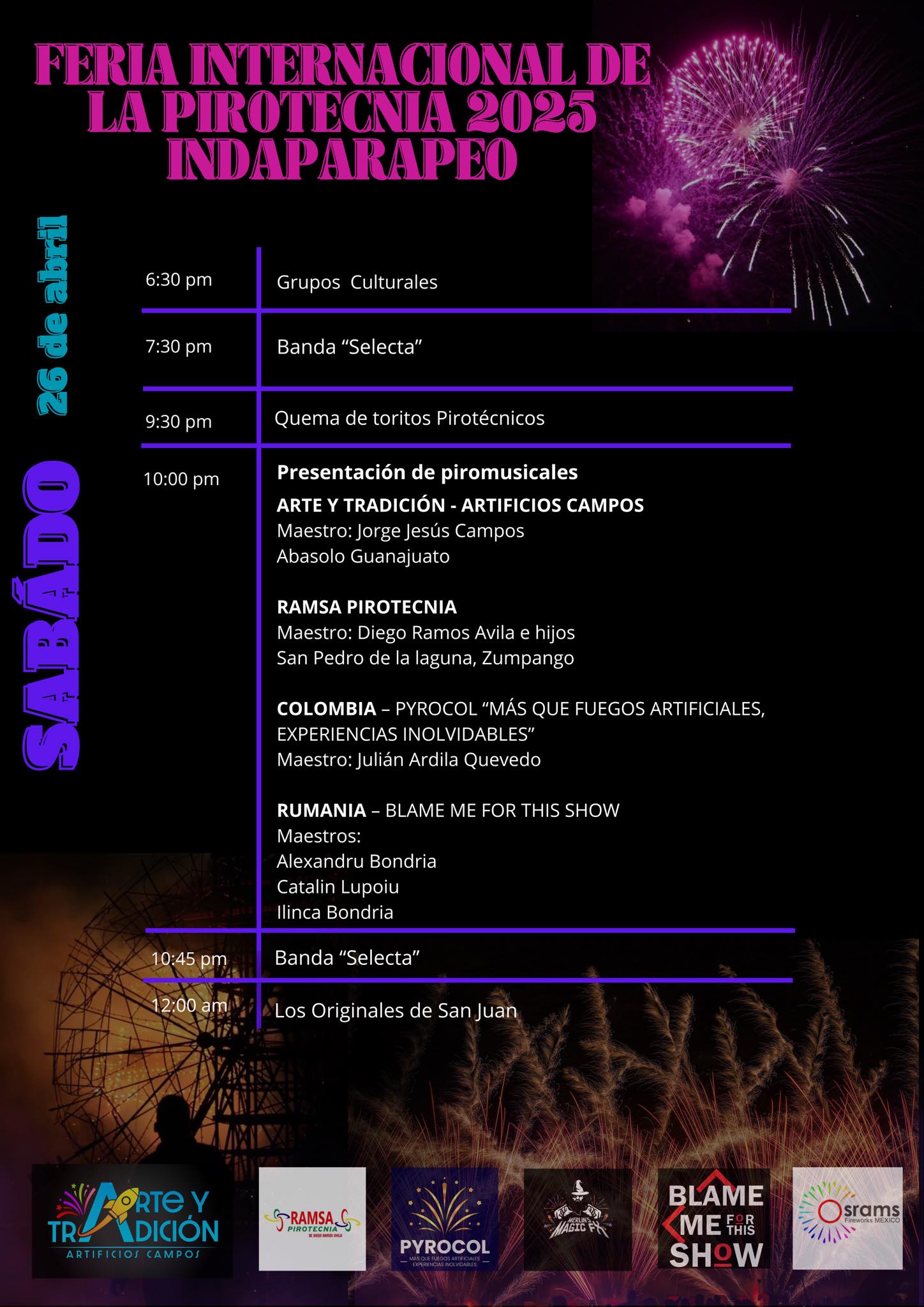 Emocionado por la presencia de grandes maestros pirotécnicos de Colombia, Alemania, Rumania y Colombia, el director de la Feria, Alberto Monroy Morán anticipó un evento único, del que podrán disfrutar las familias toda la región.