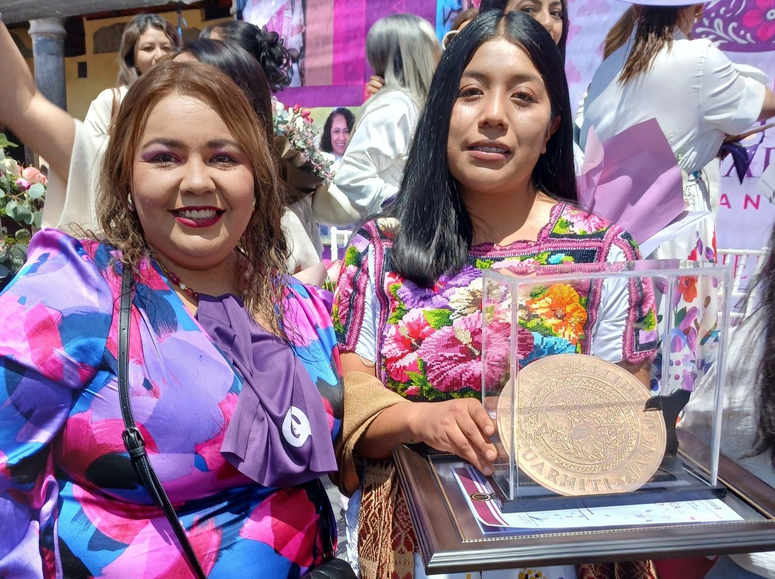 La galardonada dedicó el reconocimiento a su madre, su hermana y a las mujeres de su comunidad, subrayando la importancia de hablar de violencia en la lengua purépecha para que el mensaje llegue con claridad a las adultas mayores que no dominan el español.