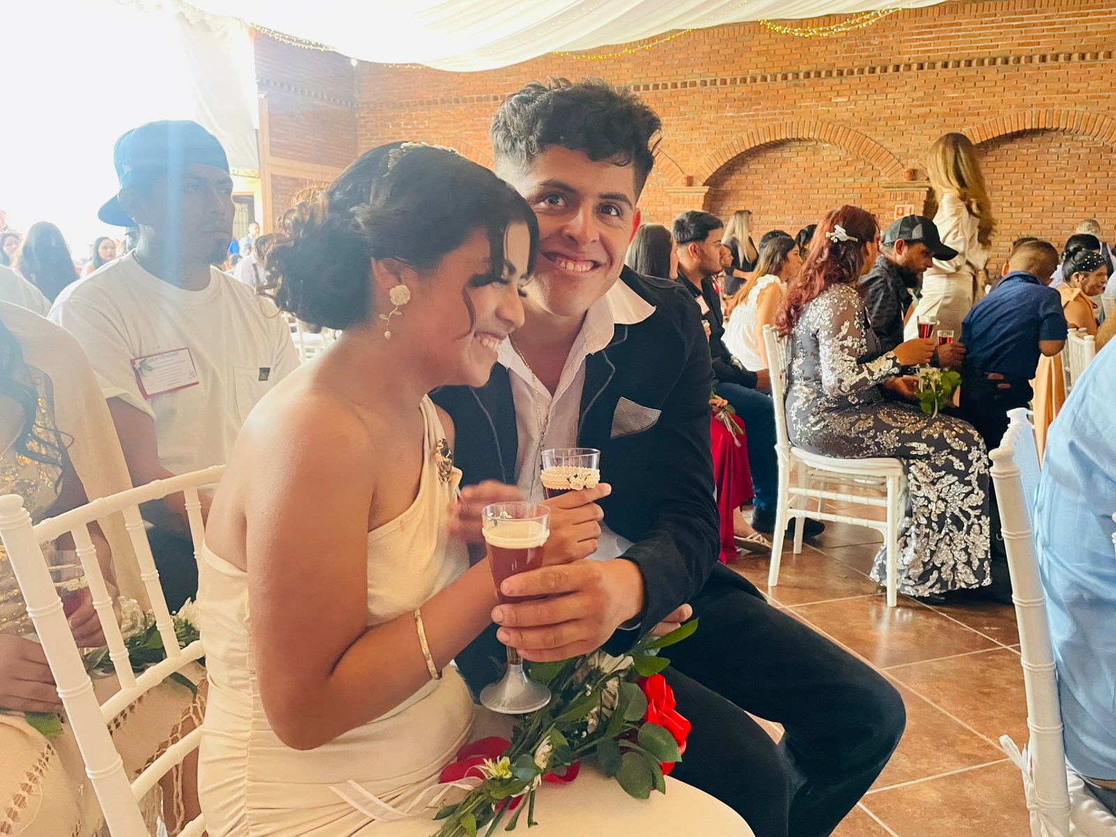 Durante la celebración, las y los recién casados intercambiaron anillos, se dieron el beso que selló su unión, partieron el tradicional pastel y realizaron el brindis acompañados de sus familias, en un ambiente de alegría y emoción.