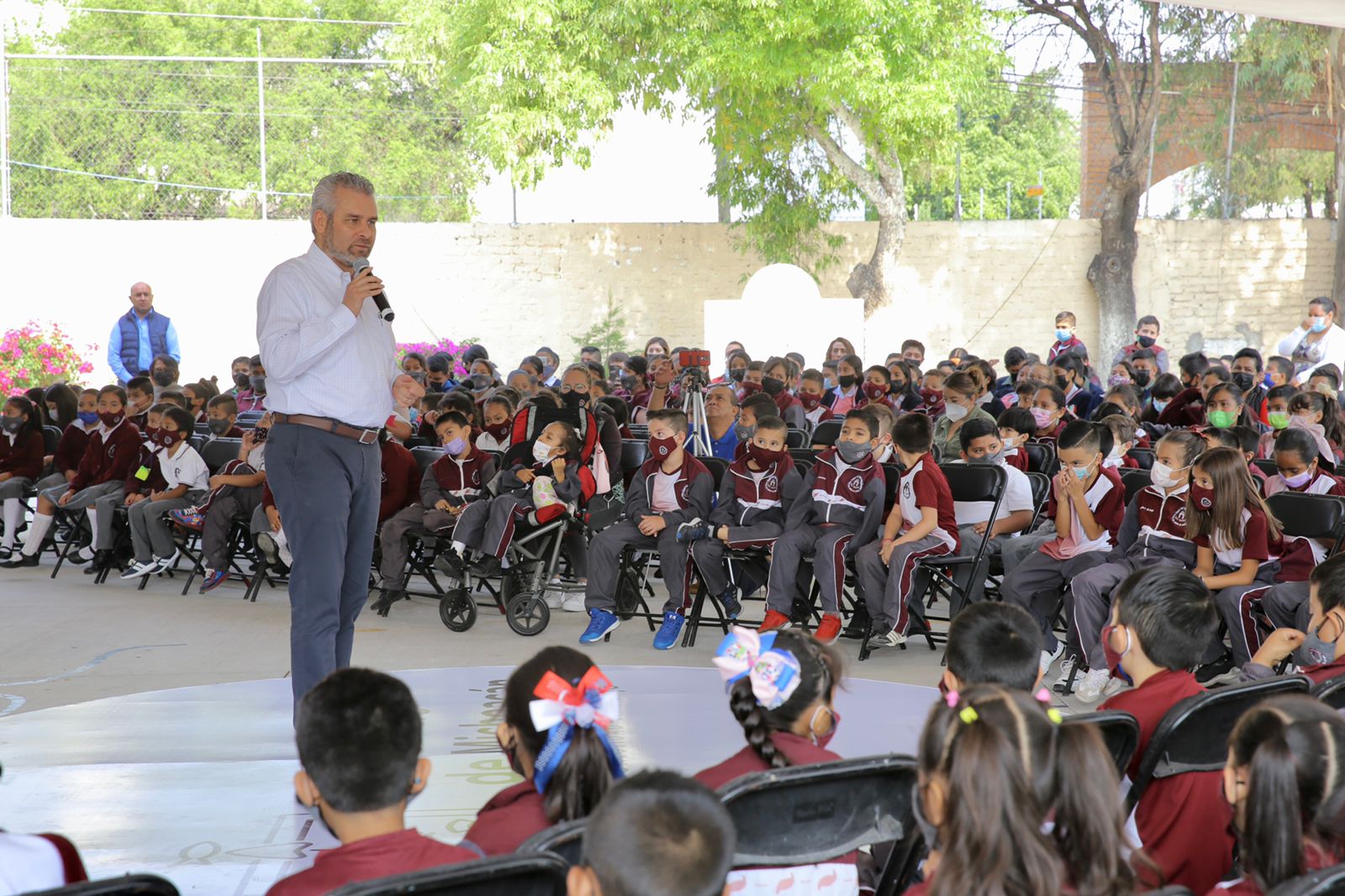 “Sin corrupción, estamos respaldando la infraestructura educativa para que alumnos y trabajadores de la educación se sientan apoyados y cuenten con condiciones para tener clases, porque creemos que el tejido social es todo un conjunto en el que el gobierno sea de servicios, no para servirnos”, manifestó.