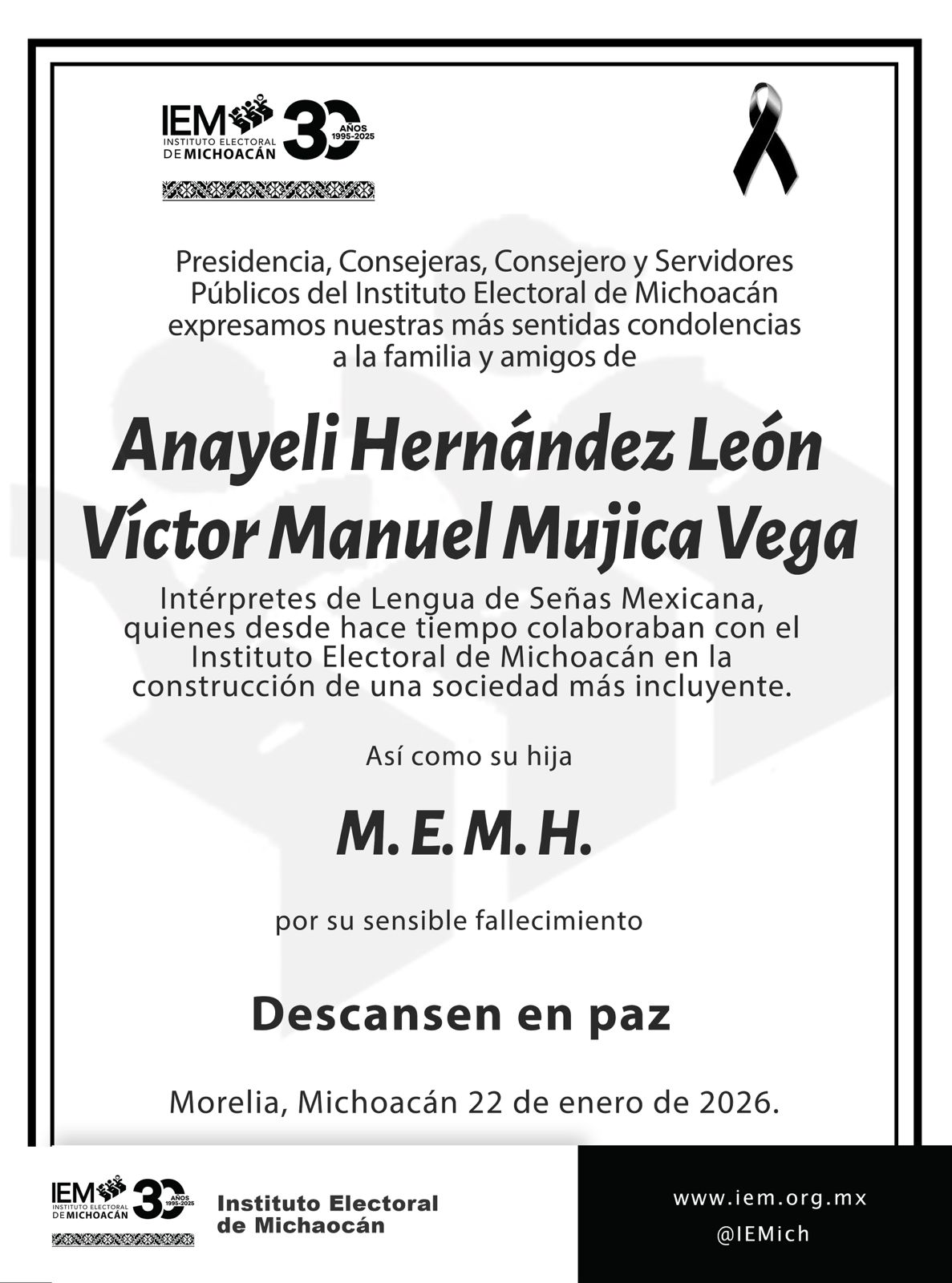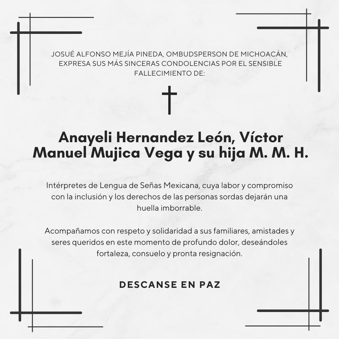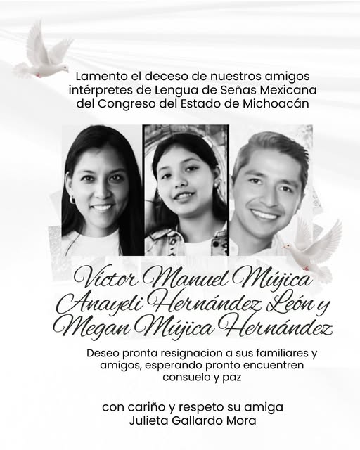 La familia era ampliamente reconocida por su labor en favor de la inclusión. Prestaban sus servicios en el Congreso del Estado, el Instituto Electoral de Michoacán (IEM) y diversas dependencias oficiales, garantizando el acceso a la información para la comunidad sorda de la entidad. Su ausencia ha dejado un vacío no solo en el ámbito profesional, sino en la lucha por los derechos humanos de las personas con discapacidad.