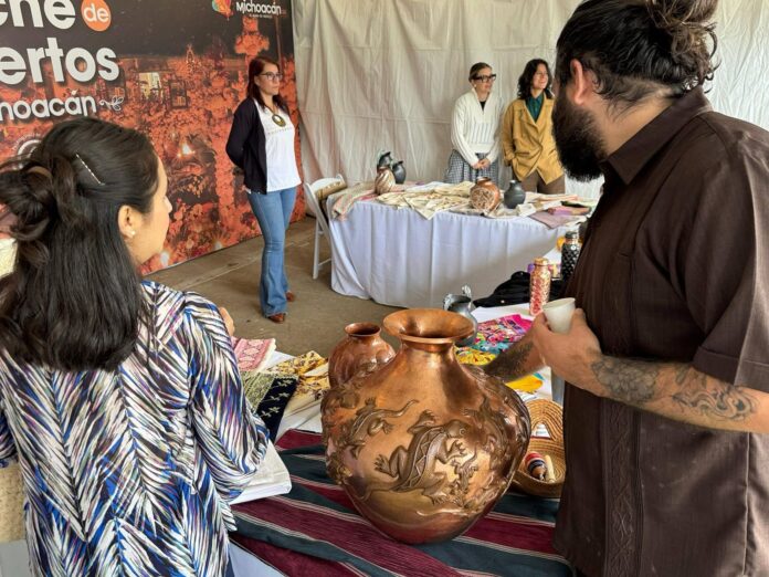 De esta manera los textiles, alfarería, cobre, madera, fibras vegetales, laca perfilada, joyería, entre otras ramas artesanales, representan a Michoacán y están a la venta para generar una ganancia directa para las y los artesanos.