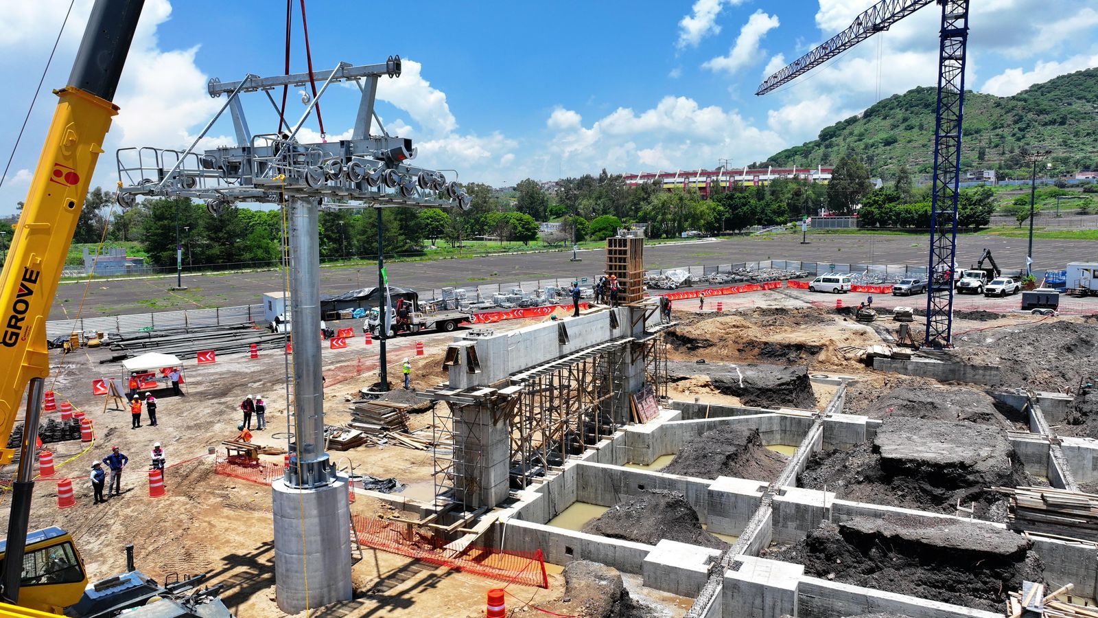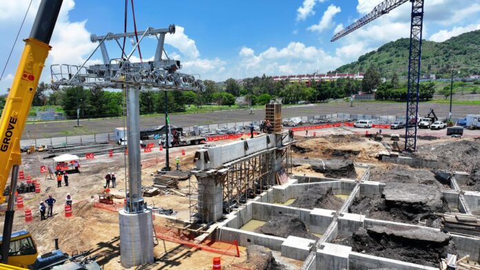 Butanda Macías detalló que el proyecto presenta actualmente un avance general del 27 por ciento, con progreso constante en acciones como cimentación, colado de pilas y preparación de los sitios donde se ubicarán las estaciones del teleférico.