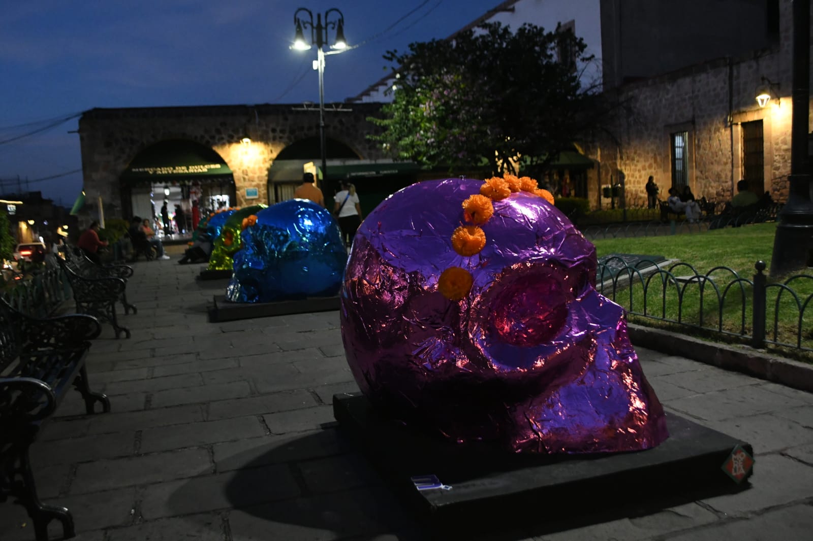 La secretaria de Turismo, Thelma Aquique Arrieta, informó que en el Centro Histórico de Morelia ya se pueden disfrutar de exhibiciones y decoraciones propias de la temporada. Espacios como la calle peatonal El Nigromante, la plaza Natalio Vázquez Pallares, el Bosque Cuauhtémoc, la Calzada Fray Antonio de San Miguel, la Cerrada de San Agustín, la Plaza Valladolid, y el Palacio Municipal, se convierten en vistosos escenarios de color con catrinas, catrines y cráneos gigantes, que rinden homenaje a nuestras raíces.