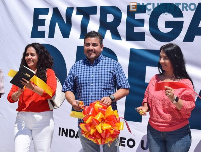 Luego de una efusiva bienvenida por parte de los niños de la primaria, el presidente municipal de Indaparapeo, Janitzio Zavala Vega, encabezó el corte del listón inaugural de la primera etapa de la calle San Juan Diego, acompañado por la síndico municipal Elizabeth Agustín Santos; Ana Patricia Calderón, secretaria municipal; José Luis Marín, director de Obras Públicas Municipales; así como por Doroteo Piña, encargado del orden de la Colonia Guadalupe, entre otras autoridades.