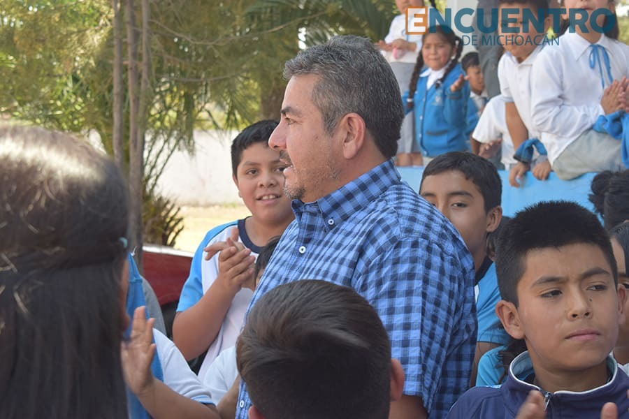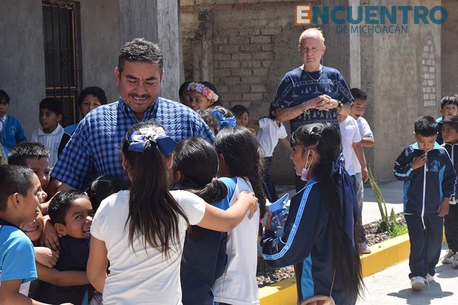 Un gran recibimiento le dieron los niños y niñas de la Escuela Primaria “Profr. Rafael Ramírez” al alcalde de Indaparapeo, Janitzio Zavala Vega, para agradecerle la pavimentación de la calle San Juan Diego, de la Colonia Guadalupe, porque ya podrán llegar a su escuela sin lodo y tierra en sus zapatos.