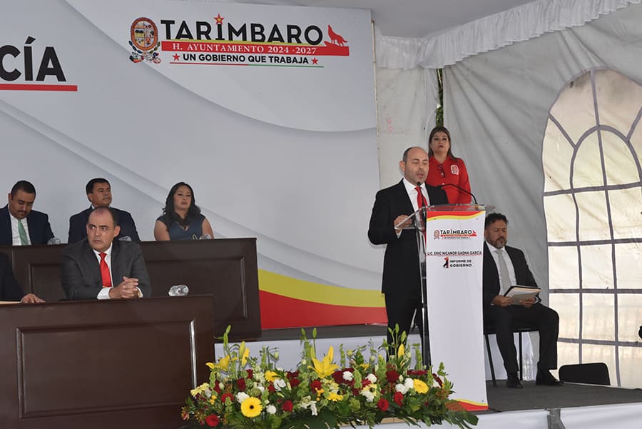 Luego de recibir un municipio en un estado lamentable de abandono, víctima de desfalco y corrupción, hoy Tarímbaro marcha hacia adelante en unidad y atención en todas sus comunidades, con más de 50 obras y 110 millones de pesos invertidos, aseveró Eric Nicanor Gaona García, presidente municipal, al rendir su Primer Informe de Gobierno.