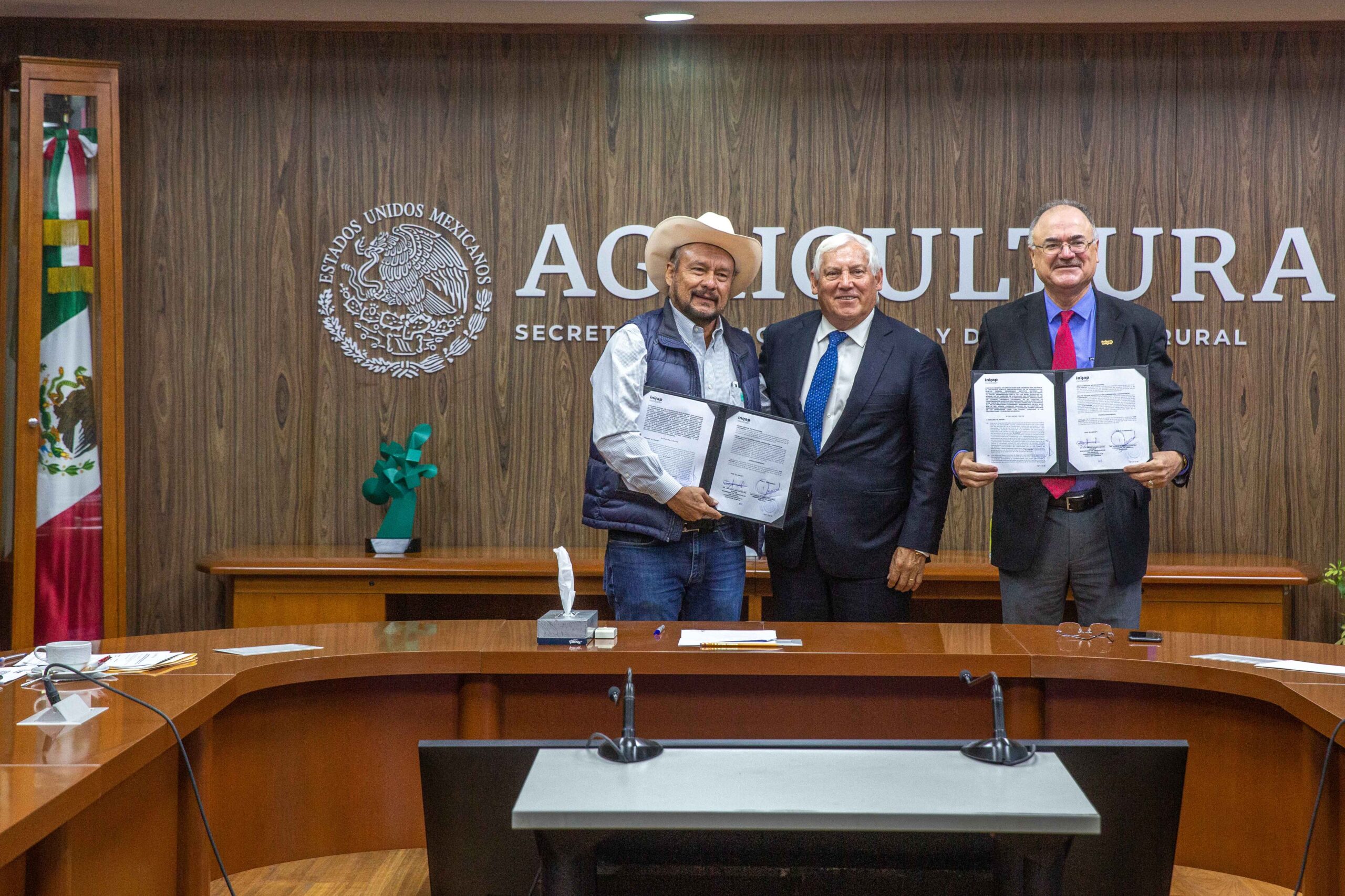 Al atestiguar la firma del convenio, el secretario de Agricultura y Desarrollo Rural, Víctor Villalobos Arámbula, resaltó que los acuerdos entre productores, institutos de investigación y autoridades, son el camino adecuado para mejorar el rendimiento de los cultivos, transferir conocimientos y tecnología y encaminar al país hacia la seguridad alimentaria.