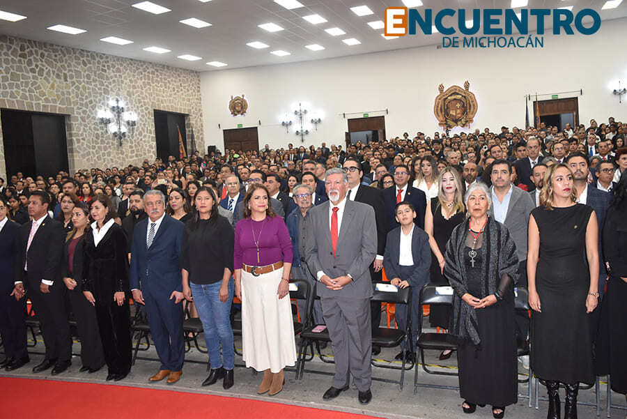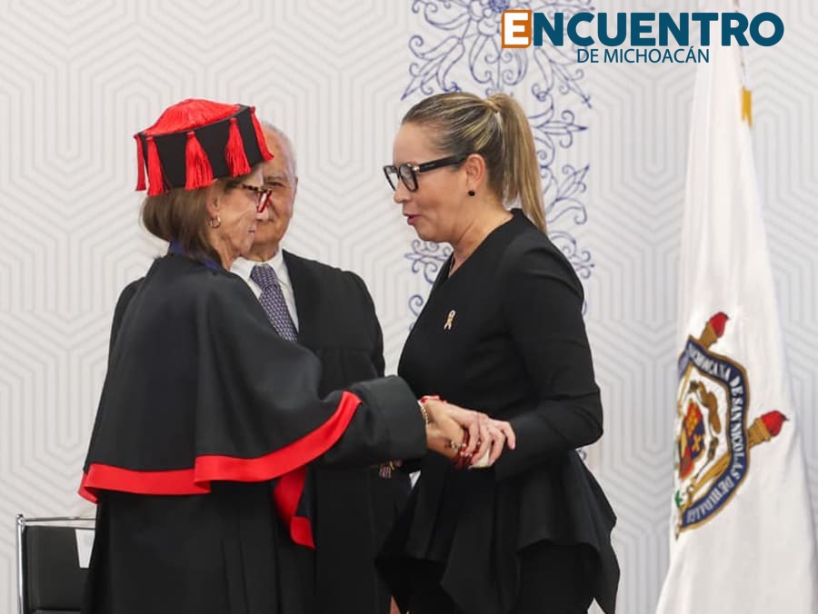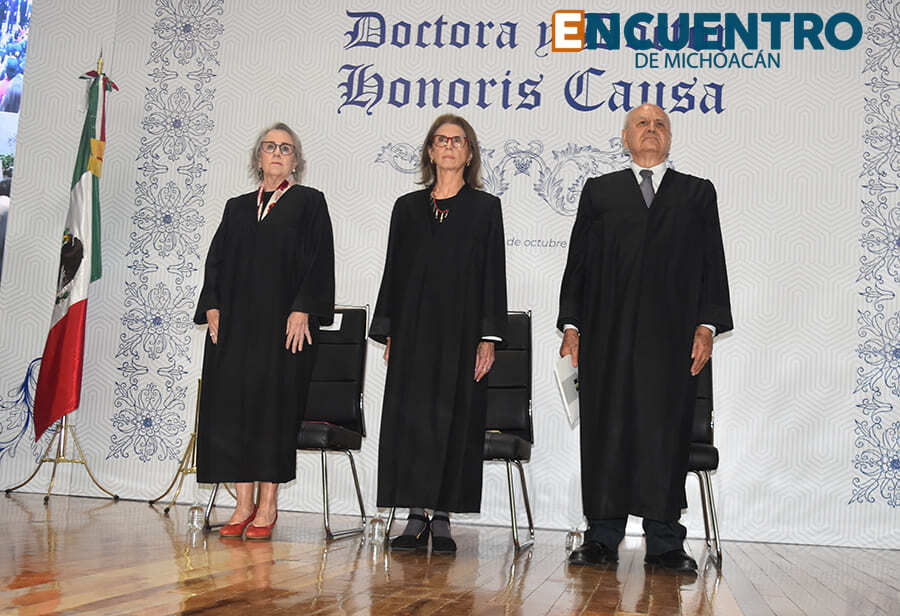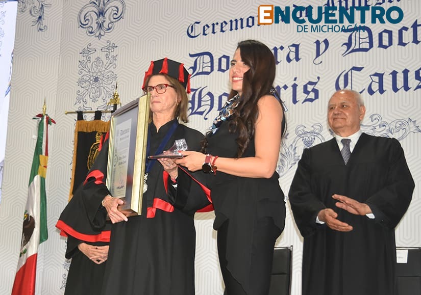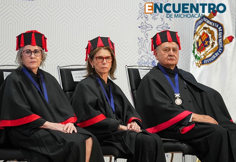 Durante la ceremonia encabezada por el gobernador Alfredo Ramírez Bedolla y la rectora Yarabí Ávila, así como por el secretario de Educación Pública, Mario Delgado Carrillo, además de Giuliana Bugarini, presidenta de la mesa directiva del Congreso Local, se entregaron también Grados Honoris Causa a los doctores Catherine Rose Ettinger y al nicolaita Gerardo Sánchez Díaz.