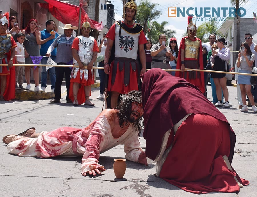 Este año, la entrega y convicción que le puso el joven Osvaldo Orozco Caravantes, en verdad transmitió a los cientos de charenses y visitantes de toda la región que se dieron cita para acompañar a Jesús de Nazaret en su Vía Crucis, azotado por los soldados romanos y humillado por los sacerdotes y la turba enardecida que prefirió la liberación del ladrón Barrabás, en lugar de la del Hijo de Dios.