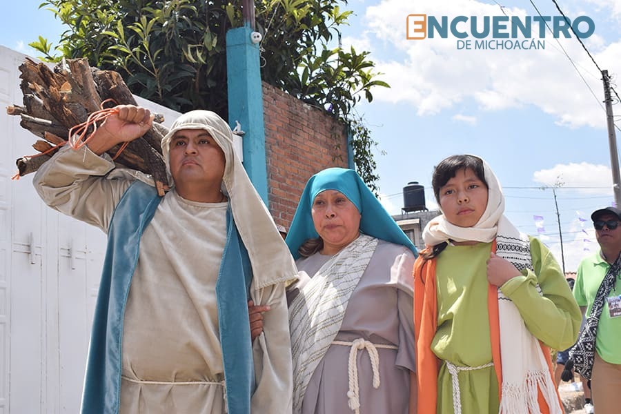 El camino al Gólgota en arameo el Monte Calvario, se representó en Charo ante decenas de visitantes y vecinos sobre la Avenida Morelos y las calles Emiliano Zapata y Miguel Silva, donde se escenificaron las tres caídas y donde Simón de Cirene ayudó al Nazareno a cargar la cruz, un madero de al menos 80 kilos que soportó el joven Ingeniero Mecánico, originario de la comunidad de Francisco I. Madero.