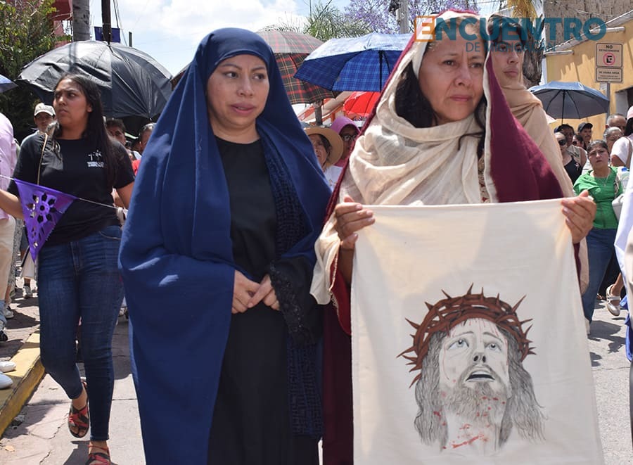 También la Virgen María consoló a su hijo rumbo a su crucifixión y la Verónica dio agua y enjuagó su rostro, llevándoselo en su paño, mientras el Hijo de Dios siguió camino a cumplir el mandato divino, al que alcanzó a cuestionar con un estremecedor: “¡Dios mío, Dios mío!, ¿por qué me has abandonado!” (Eli, Eli, lama sabactaní), en el arameo antiguo.