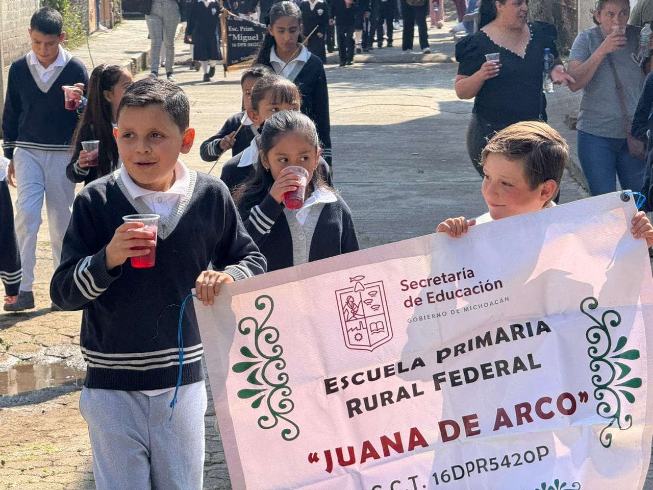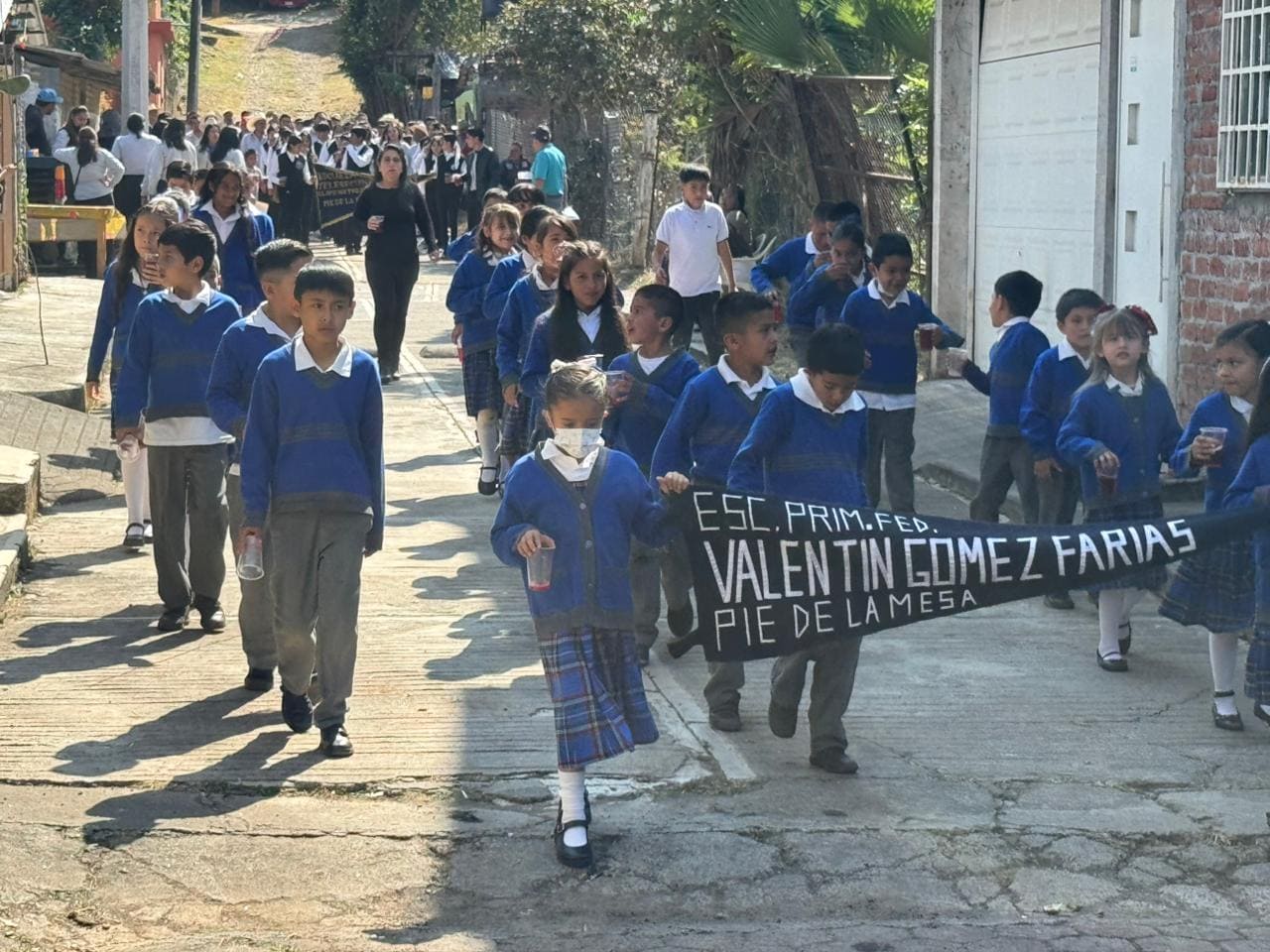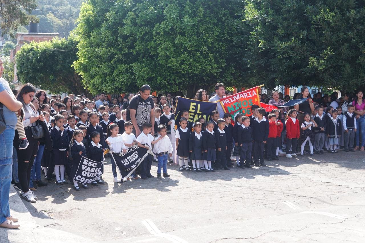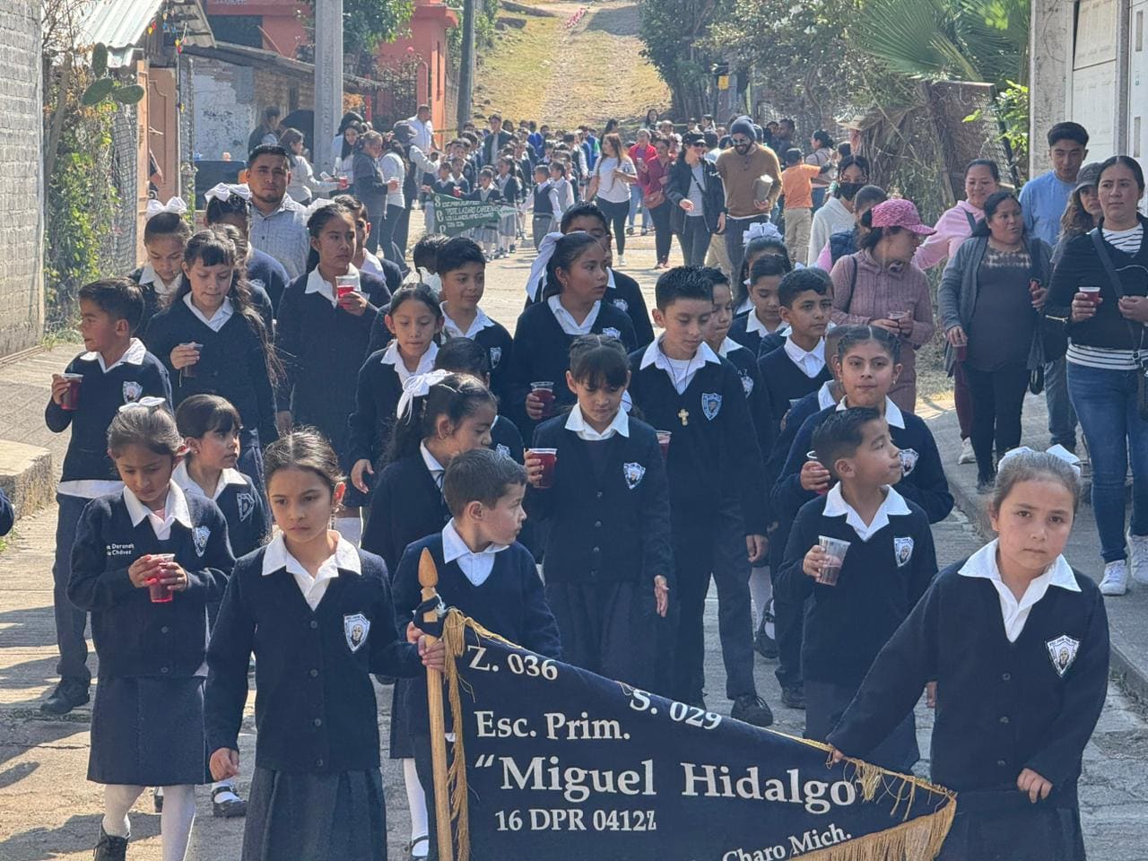 Las calles de la tenencia se llenaron de vida con un desfile cívico que destacó por la nutrida asistencia de los vecinos. Estudiantes, docentes y padres de familia marcharon hombro a hombro, convirtiendo la conmemoración en una auténtica muestra de civismo y amor por su tierra.