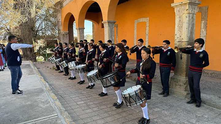 En Cuitzeo se conmemoró el Día de la Bandera en la Explanada Bicentenario, con la participación de la Banda de Guerra y Escolta del Colegio de Bachilleres Plantel Cuizeo.