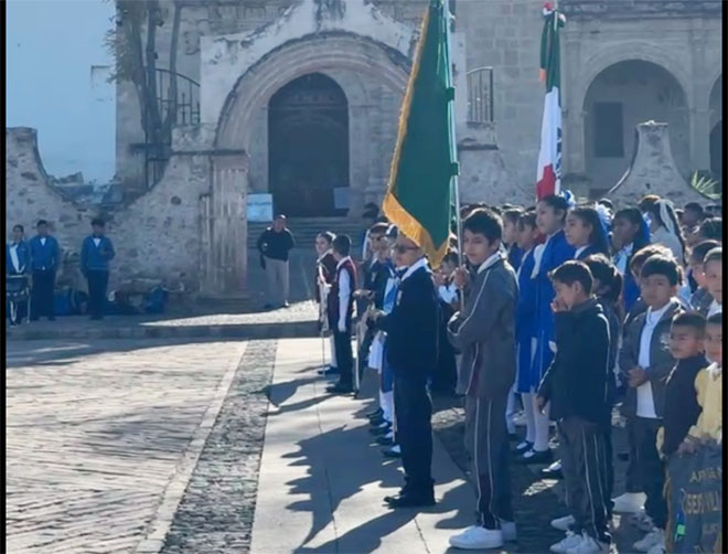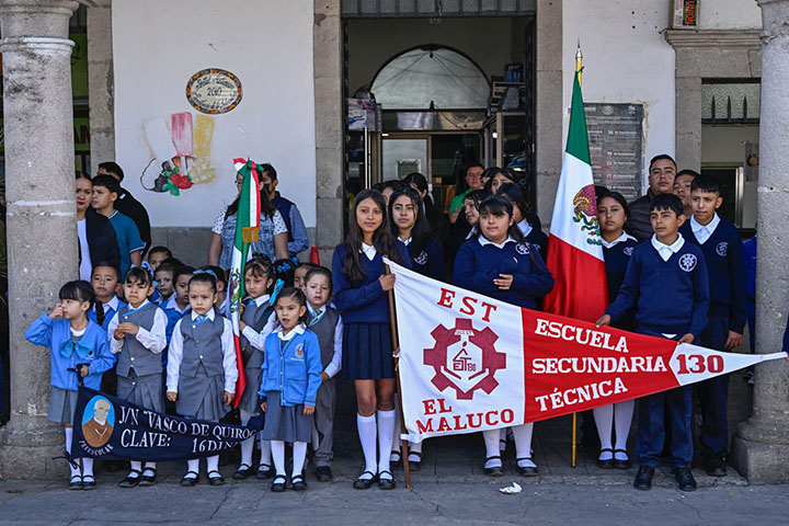 En Puruándiro, el alcalde Víctor Vázquez encabezó la ceremonia que estuvo a cargo de los alumnos de la Escuela Primaria Urbana “Niños de México”.