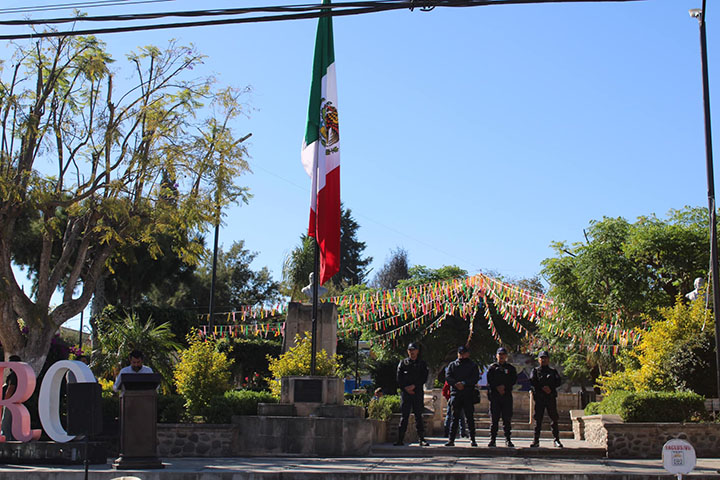 En Angamacutiro, el presidente Hermes Pacheco destacó que “Nuestra bandera es más que un símbolo, más que una combinación de colores, representa la grandeza de nuestro pueblo, nos representa a cada uno de nosotros, representa la lucha de todos nuestros antepasados que ofrendaron su vida por nosotros, representa cada uno de nuestros anhelos de una patria en desarrollo y en bienestar”.