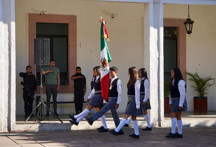“La regidora María del Rocío Estrada Díaz fue la oradora oficial, resaltando la importancia de la Bandera como símbolo de unidad e identidad de todos los mexicanos”, destacó el municipio.