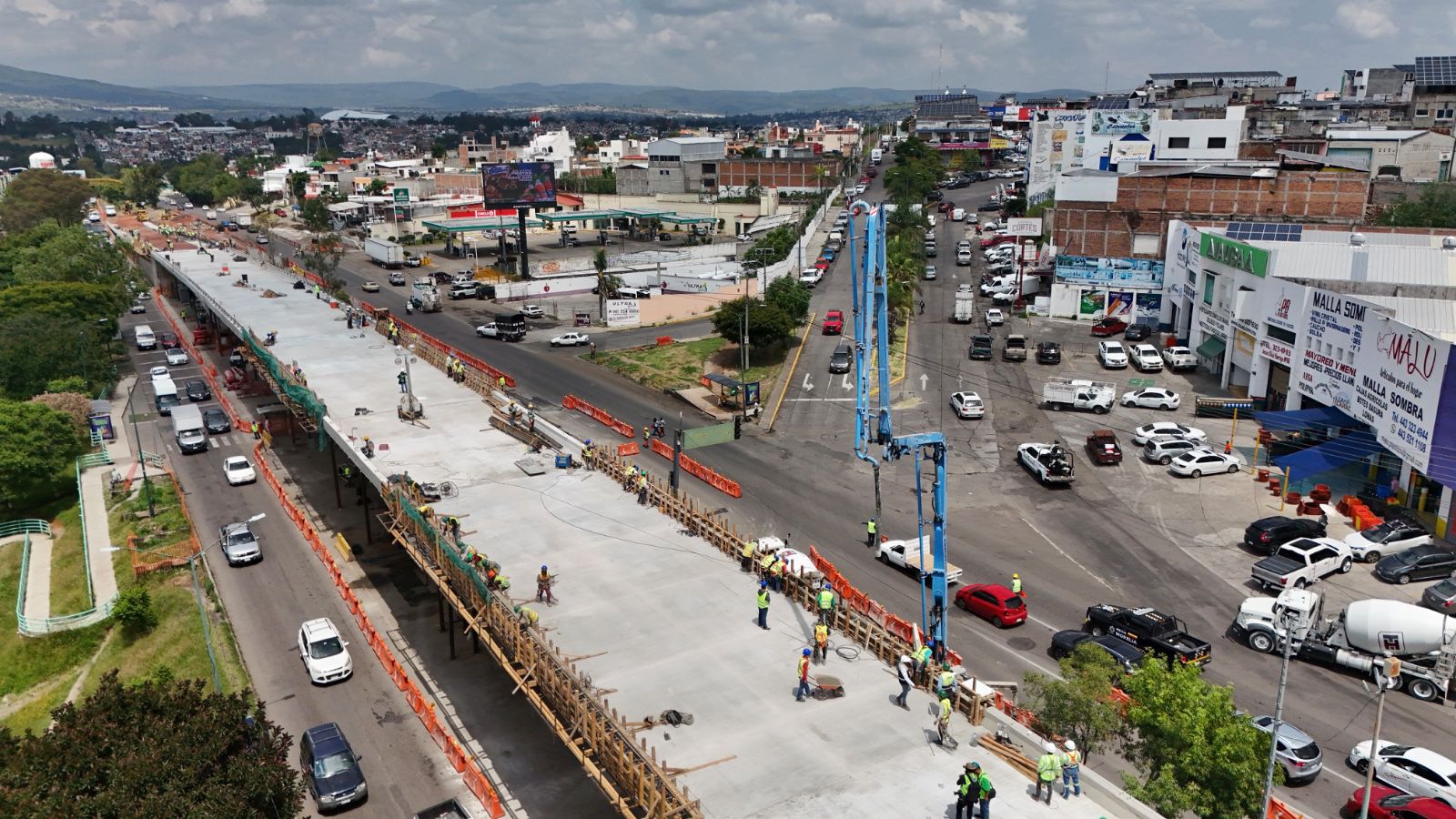 El distribuidor vial se realiza con una inversión estatal multianual cercana a los 442 millones de pesos, lo que garantiza su mantenimiento y conservación hasta el año 2027; medirá poco más de medio kilómetro y consta de 10 carriles: seis elevados y cuatro a nivel en ambos sentidos; además, se utiliza concreto hidráulico para una mayor durabilidad.