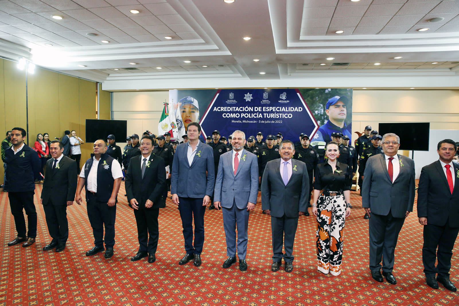 Con el propósito de fortalecer las capacidades de seguridad en materia turística, este martes el gobernador Alfredo Ramírez Bedolla, en compañía del titular de la Secretaría de Seguridad Pública (SSP), General José Alfredo Ortega Reyes, entregaron las primeras 61 constancias de especialidad a elementos de la Policía Turística.