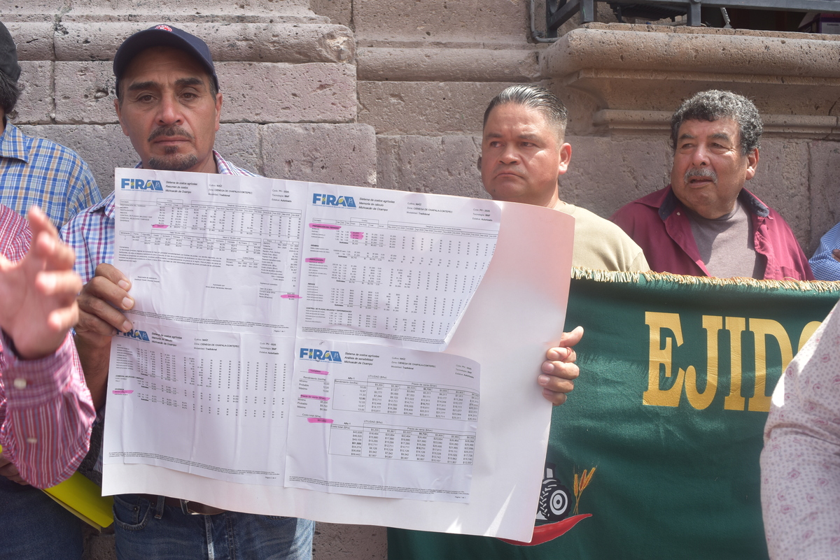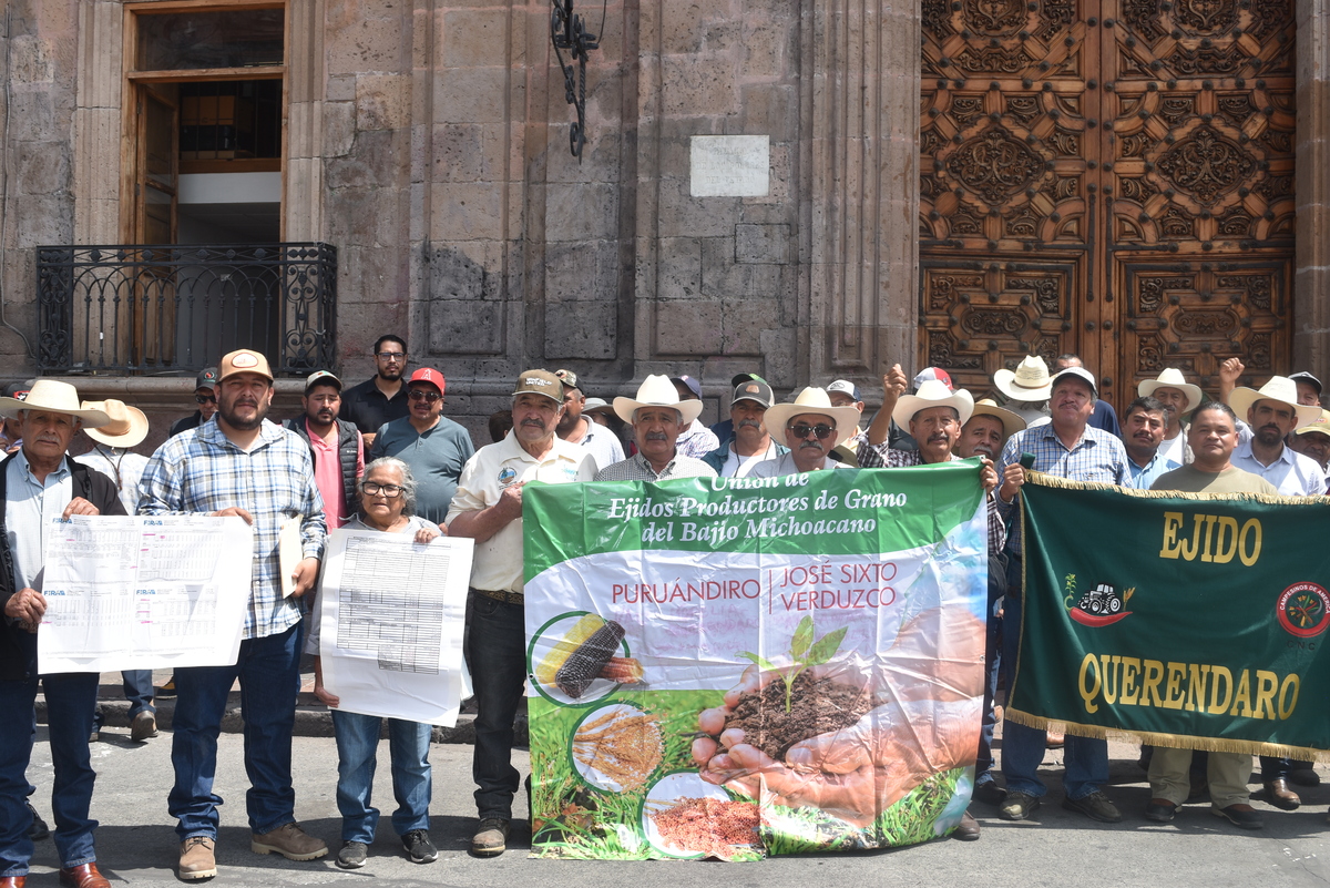 Integrantes de la Unión de Productores de Granos Básicos del Estado de Michoacán se manifestaron pacíficamente frente a Palacio de Gobierno para entregar una solicitud de apoyo a la comercialización del maíz al gobernador Alfredo Ramírez Bedolla. Los productores, al borde de la crisis, exigen la intervención de las autoridades ante el aumento de los costos de producción y los bajos precios de sus cosechas.