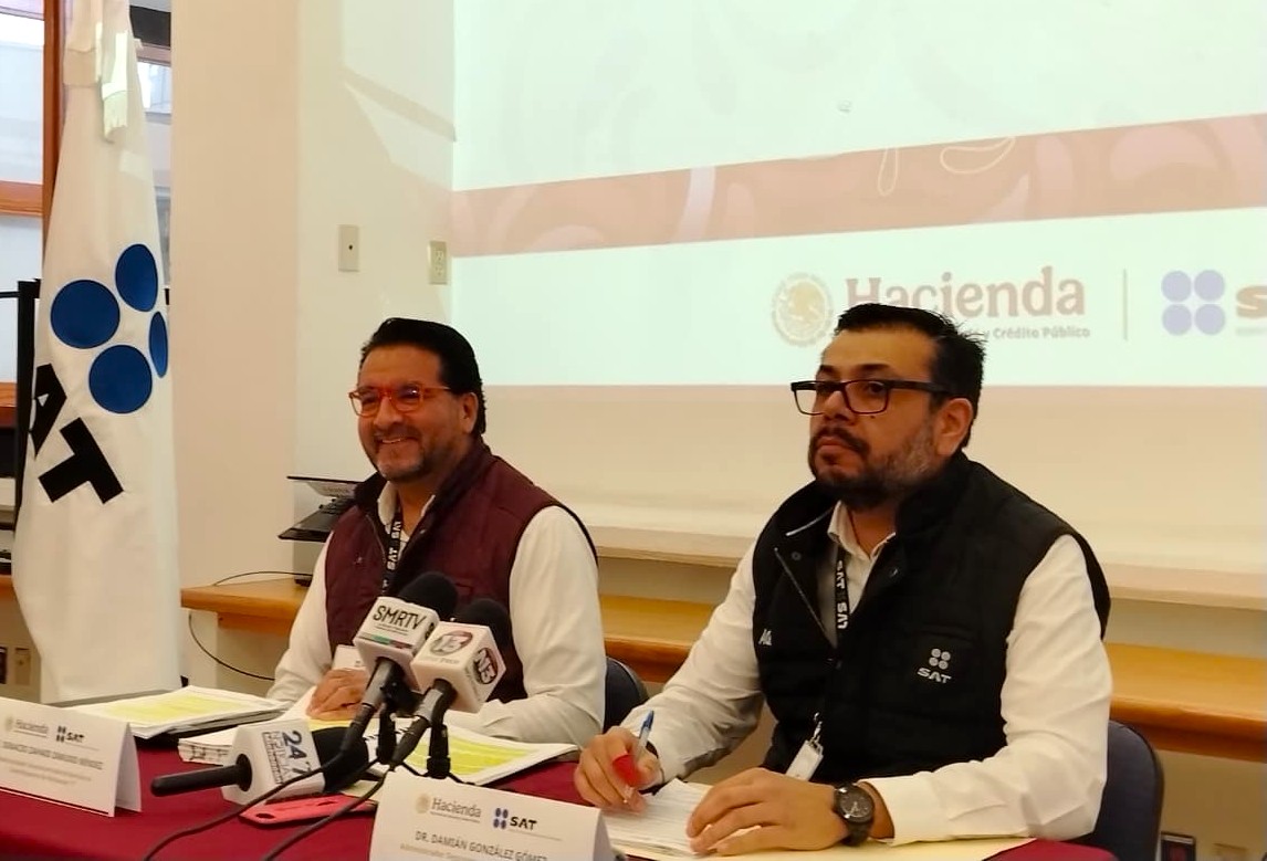 En rueda de prensa, Damián González Gómez, administrador Desconcentrado de Recaudación, e Ignacio Zahaid Zamudio Méndez, administrador de Servicios al Contribuyente, presentaron el Programa de Regularización Fiscal 2026, el cual destaca por ofrecer la condonación de hasta el 100% en multas, recargos y gastos de ejecución para quienes decidan ponerse al corriente.
