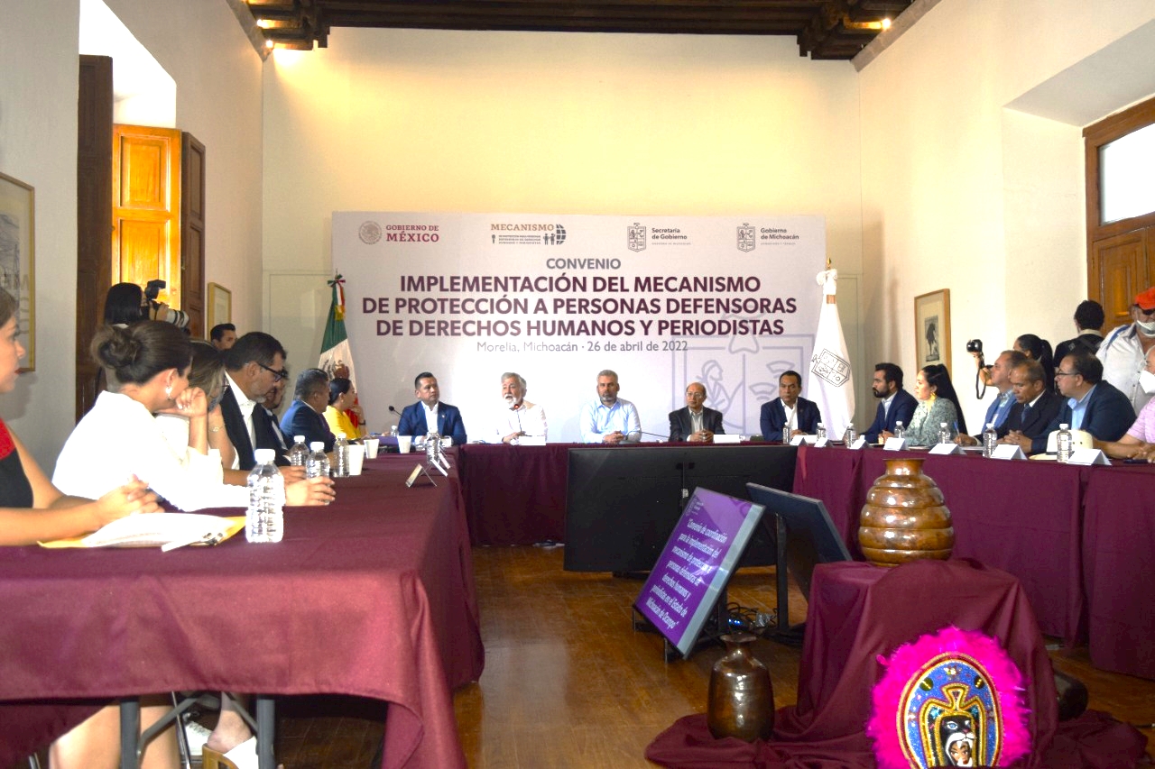 El gobierno de Michoacán y su par federal, a través de la subsecretaría de Derechos Humanos y Población, que encabeza Alejandro Encinas en la Segob, signaron un convenio con actores del sector social y organizaciones de Derechos Humanos, así como periodistas de la entidad, para presentación de una iniciativa ante el Congreso local, para reformar la Ley de Protección a Periodistas, para abrir la puerta a la implementación de un mecanismo de Protección a Personas Defensoras de Derechos Humanos y Periodistas, como instrumento indispensable para hacer frente a quienes generan violencia contra activistas y comunicadores en Michoacán.