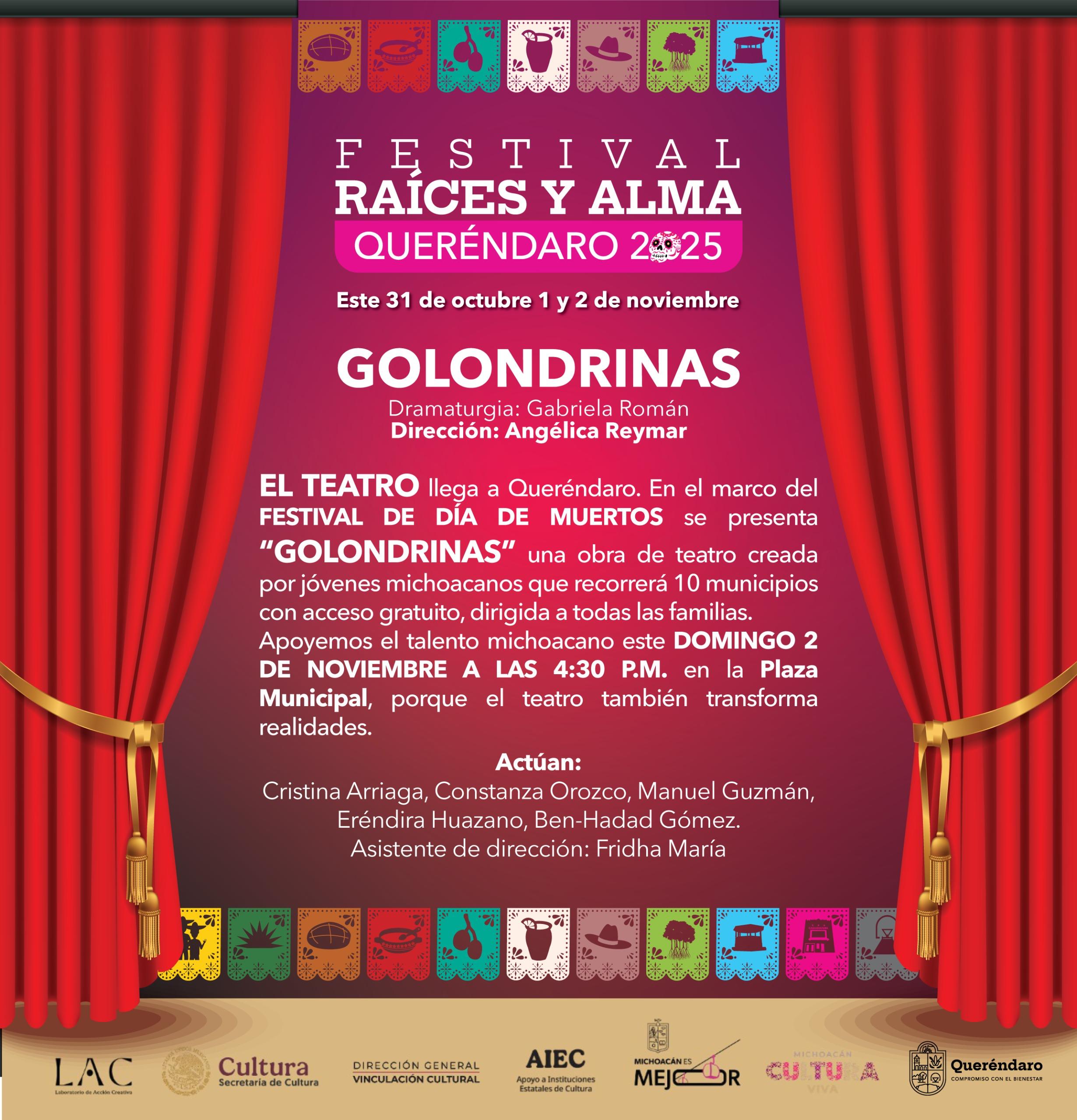 El Ayuntamiento de Queréndaro invita a la ciudadanía a disfrutar del Festival “Raíces y Alma”, una celebración llena de color, arte y tradición que se llevará a cabo del 31 de octubre al 2 de noviembre, en el marco de las festividades de Día de Muertos.