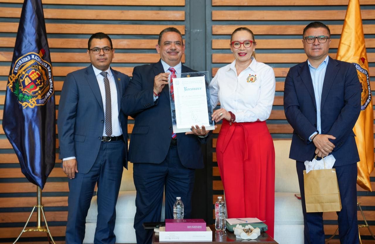 “Ojalá que nuestras y nuestros estudiantes tengan las puertas abiertas para su servicio social, sus prácticas profesionales y por supuesto para el mercado laboral porque aquí en la Universidad Michoacana el humanismo no solamente se lleva en un eslogan sino también se ejemplifica con las buenas acciones del buen ciudadano”.