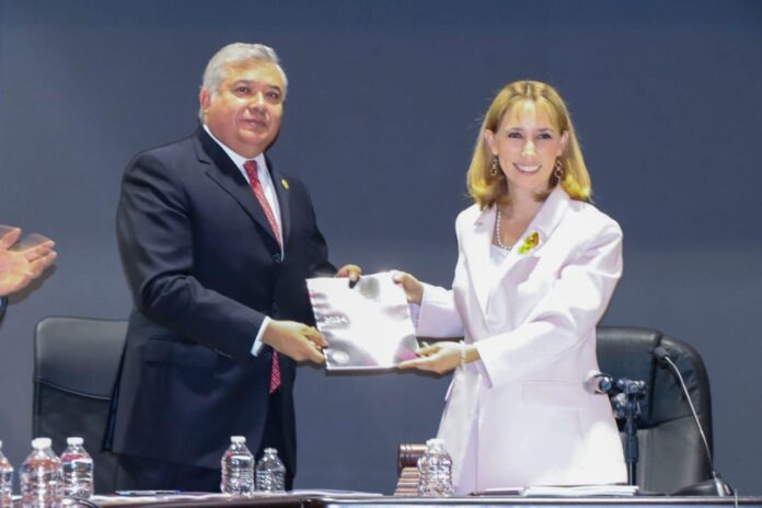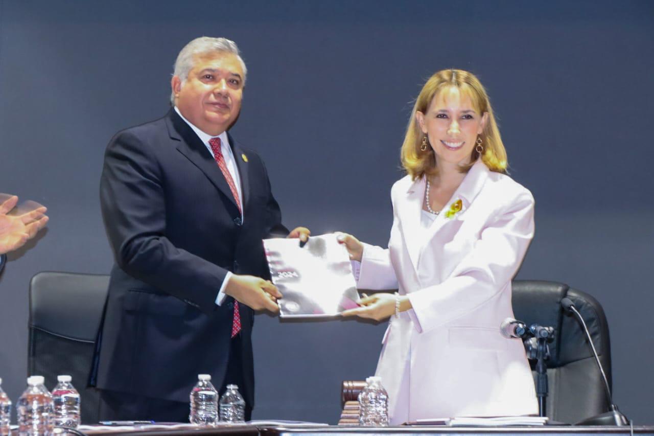 El Presidente de la Mesa Directiva del Congreso del Estado, Juan Antonio Magaña de la Mora recibió de manos de la Presidenta del Tribunal en Materia Anticorrupción y Administrativa, Lizett Puebla Solórzano, el Informe de Labores 2024, del que dijo, estima, muestra resultados exitosos.