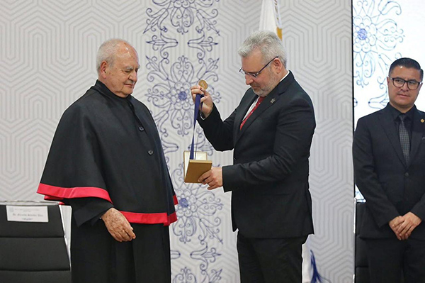 El gobernador Alfredo Ramírez Bedolla asistió a la ceremonia de investidura donde la Universidad Michoacana de San Nicolás de Hidalgo (UMSNH) distinguió con el doctorado “honoris causa” a Catherine Rose Ettinger Mc Enulty, Annie Pardo Cemo y Gerardo Sánchez Díaz.