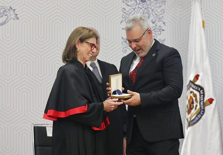 La rectora de la UMSNH, Yarabí Ávila González, aportó que con la entrega de estos reconocimientos, que sirve de puente entre el pasado y el futuro de la Máxima Casa de Estudios, se retoma la tradición de distinguir la trayectoria excepcional de figuras destacas, luego de siete años sin otorgar doctorados honoris causa.