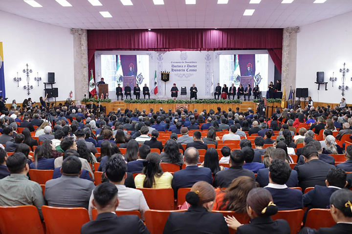 También, integrantes de la Comisión Especial para el Otorgamiento del Grado Doctor o Doctora Honoris Causa; legisladores federales y locales; magistradas y magistrados; autoridades estatales, municipales, educativas y eclesiásticas; así como exrectores y estudiantes de la Universidad Michoacana.