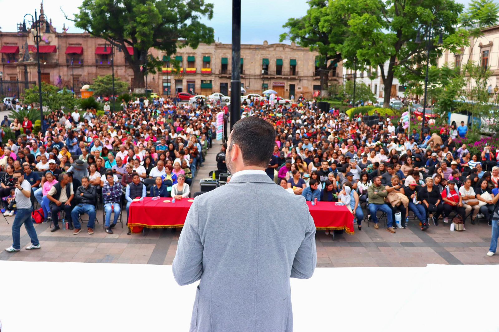 Frente a cientos de morelianos y morelianas, Yankel Benítez celebró que durante más de 3 años el Gobierno Municipal ha caminado junto a Antorcha Campesina en diversos proyectos sociales.