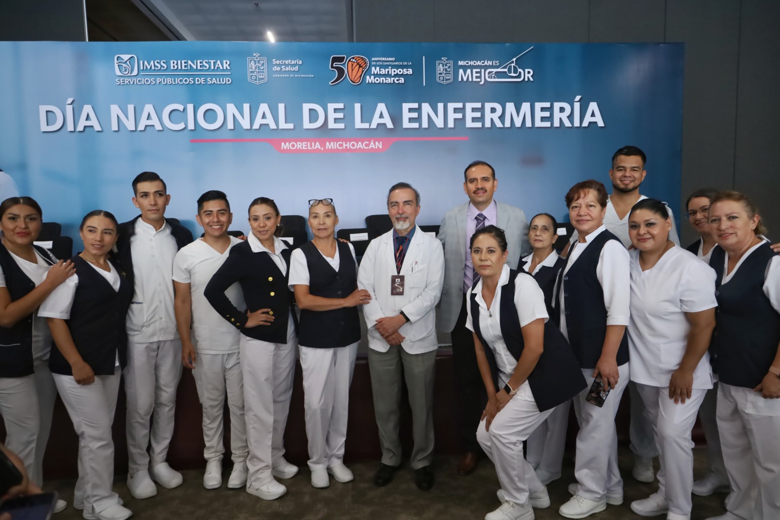La Secretaría de Salud de Michoacán (SSM) y el IMSS Bienestar conmemoraron el Día Nacional de la Enfermería, con la entrega de reconocimientos a destacadas figuras de este sector.