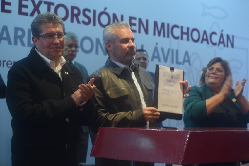 Presidentes municipales de todos los rumbos y filiaciones políticas en Michoacán respaldaron la nueva Ley Antiextorsión que promulgó este medio día el gobernador Alfredo Ramírez Bedolla al firmar el decreto de Ley contra el Delito de Extorsión en Michoacán, misma que en la víspera fue aprobada por la 75 Legislatura local, por lo que el mandatario felicitó y agradeció la disposición de las y los legisladores estatales para reformar el marco legal en tan solo 15 días desde que la envió al Congreso del Estado, y que hoy representa un referente para impulsar una Ley General Antiextorsión en México.