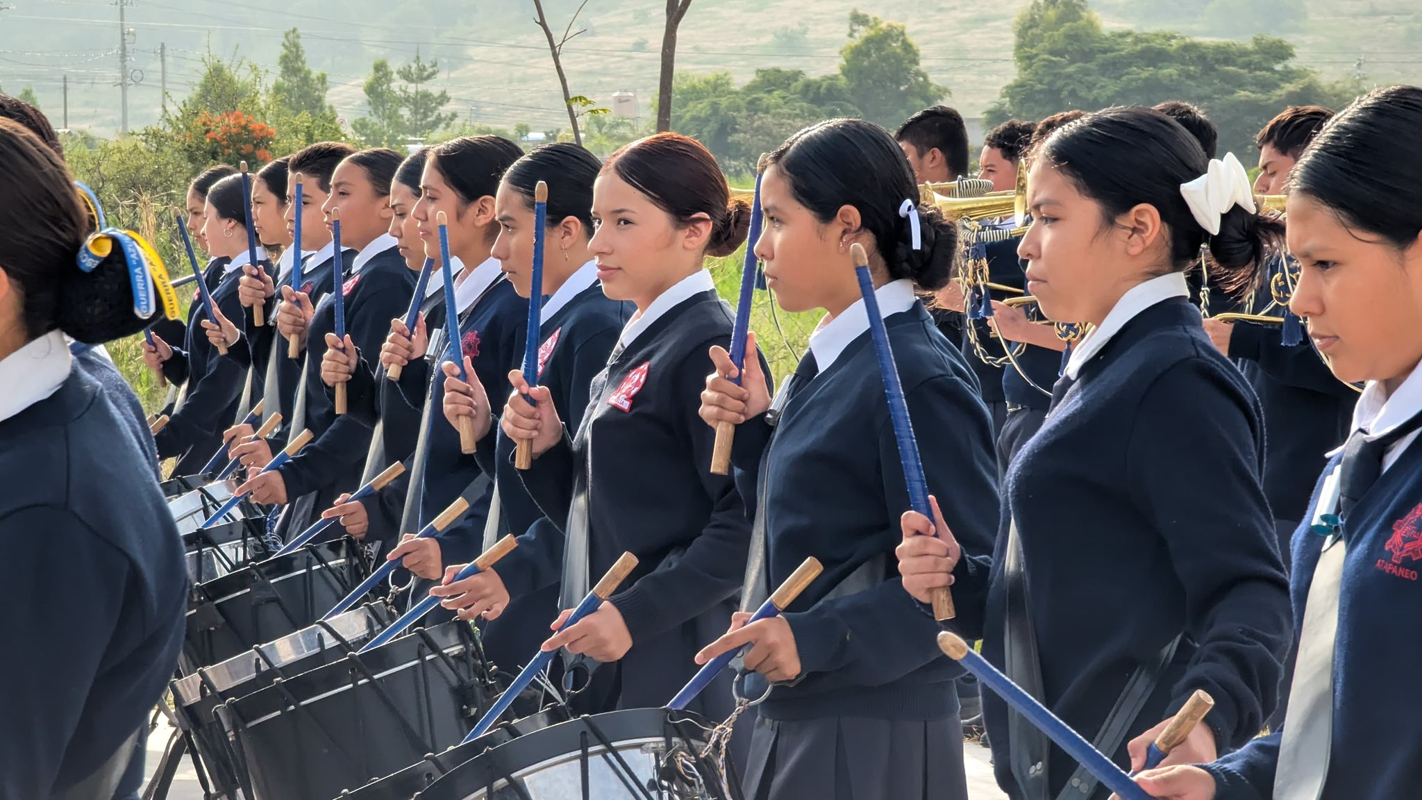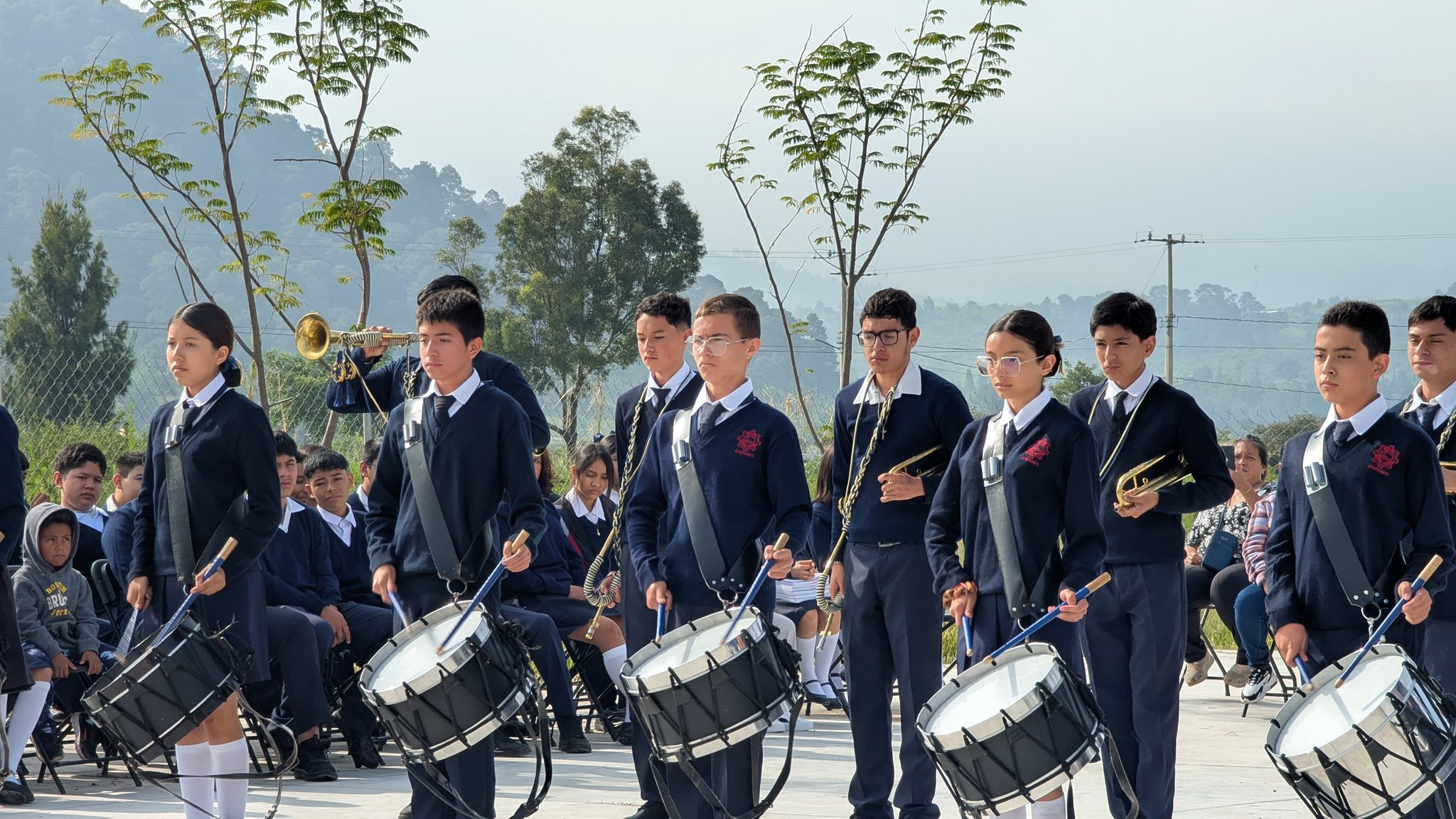 En el acto cívico participó la banda de guerra de la EST 114 de Atapaneo, conocida también por la impresión del prestigiado periódico escolar El Venadito.