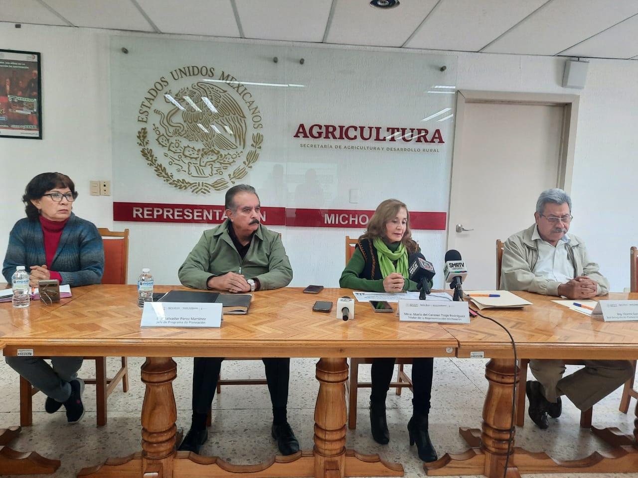 María del Carmen Trejo Rodríguez, representante de la Secretaría de Agricultura Federal en Michoacán, y Vicente García Lara, subdelegado de Planeación y Desarrollo Rural, hicieron un llamado a los productores para que acudan a solicitar su inscripción al programa que estará vigente desde el 15 de octubre hasta el último día del año.