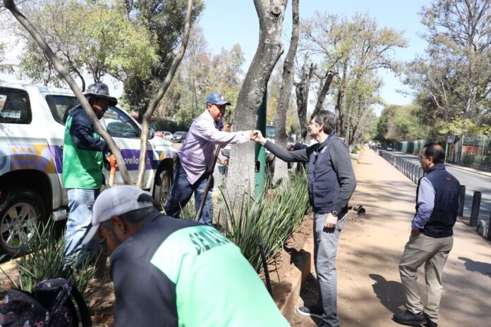 Acompañado del secretario de Servicios Públicos Municipales, Nezahualcóyotl Vázquez Vargas, el Alcalde verificó los avances en la poda sanitaria, rehabilitación de áreas verdes y mejora de camellones.