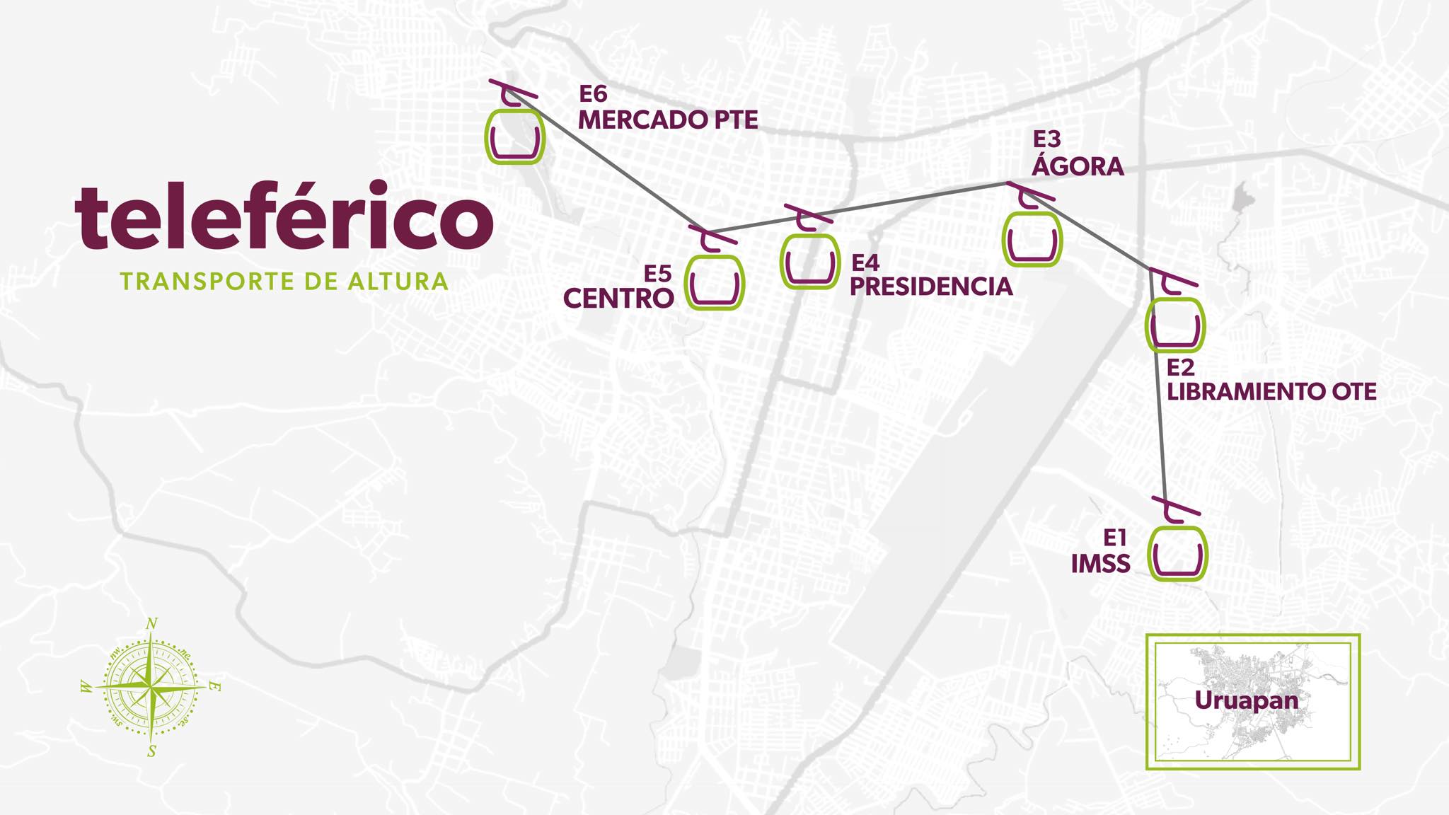 Se recordó que el teleférico comprenderá 8.4 kilómetros de recorrido de Oriente a Poniente con 6 estaciones permitiendo el ordenamiento urbano y el desarrollo turístico y productivo regional.