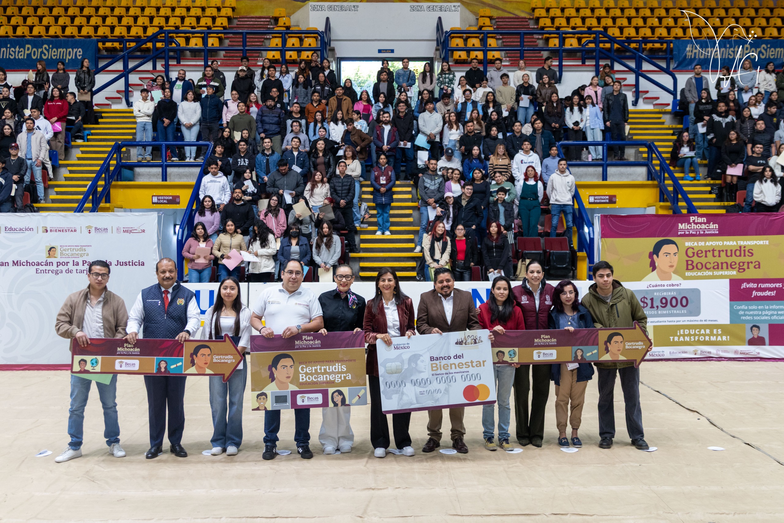Tras explicar que la tarjeta del Banco del Bienestar, es el medio de cobro a través del cual se va a estar dispersando cada bimestre el recurso para que las alumnas y alumnos puedan recibir el apoyo correspondiente a la beca, señaló que para la presidenta Claudia Sheimbaum, el sector joven pero particularmente los estudiantes, son de suma importancia, de ahí que el día 9 de noviembre pasado se dio a conocer el Plan Michoacán, que comprende 12 ejes y 100 acciones, y una de ellas es la beca Gertrudis Bocanegra.