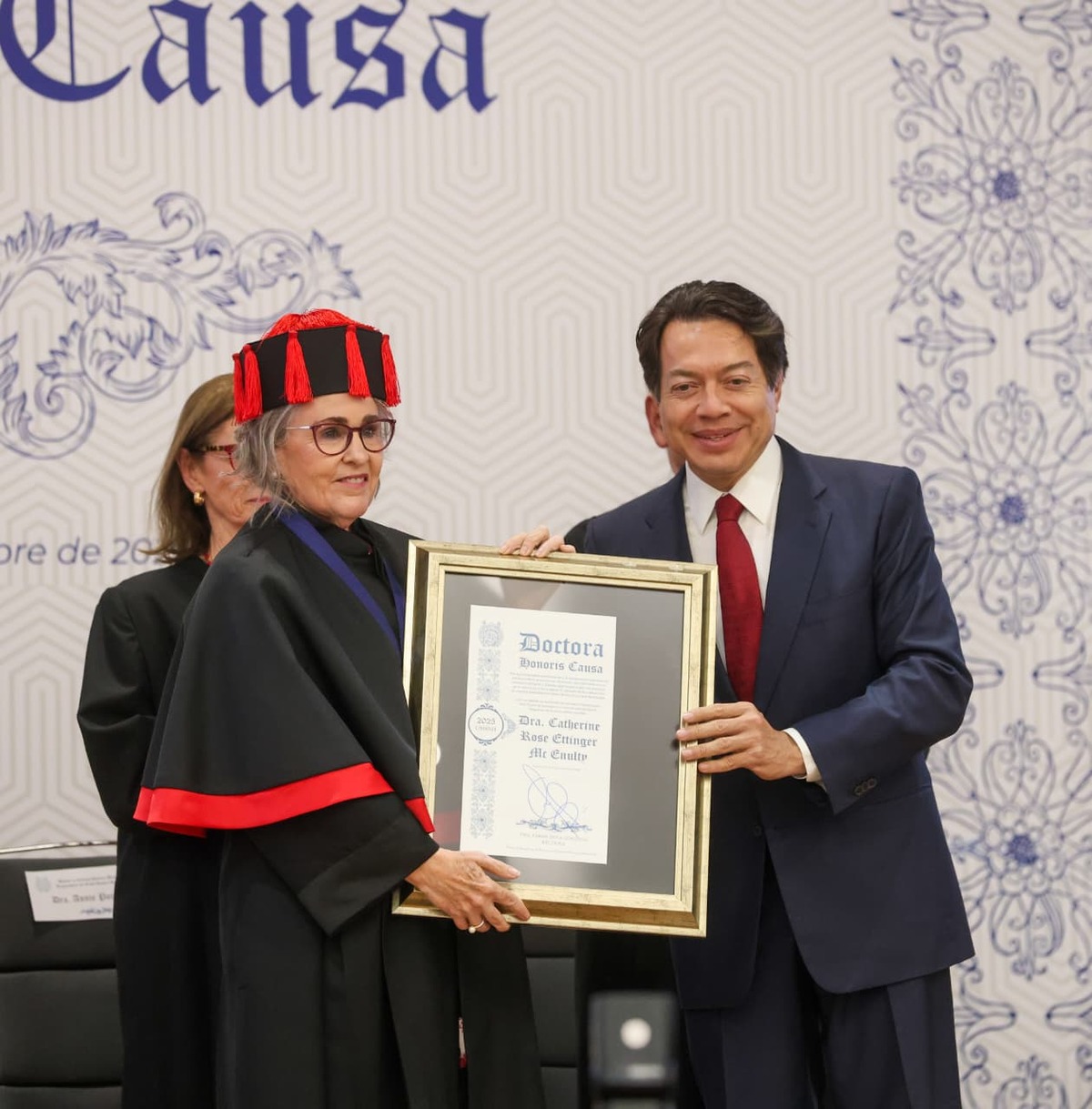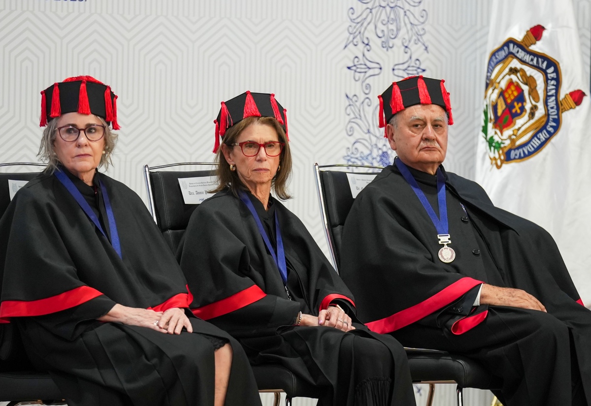 Por su excepcional trayectoria y compromiso universitario, las doctoras Catherine Rose Ettinger Mc Enulty y Annie Pardo Cemo, así como el doctor Gerardo Sánchez Díaz recibieron el Grado de Doctoras y Doctor Honoris Causa que otorga la Universidad Michoacana de San Nicolás de Hidalgo (UMSNH).