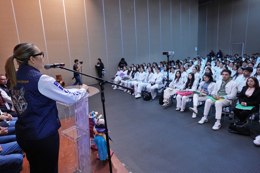 Ahí, manifestó que, hoy es un día muy importante para las y los alumnos, ya que tomarán una decisión que es parte de los resultados y del esfuerzo que realizaron desde el ingreso a la facultad. En este sentido, las y los invitó a que la atención que brinden la den con vocación, con pasión y con responsabilidad, al referir que trabajarán con recurso humano y una palabra puede hacer la diferencia para impulsar y ayudar o tener un impacto negativo en una persona.
